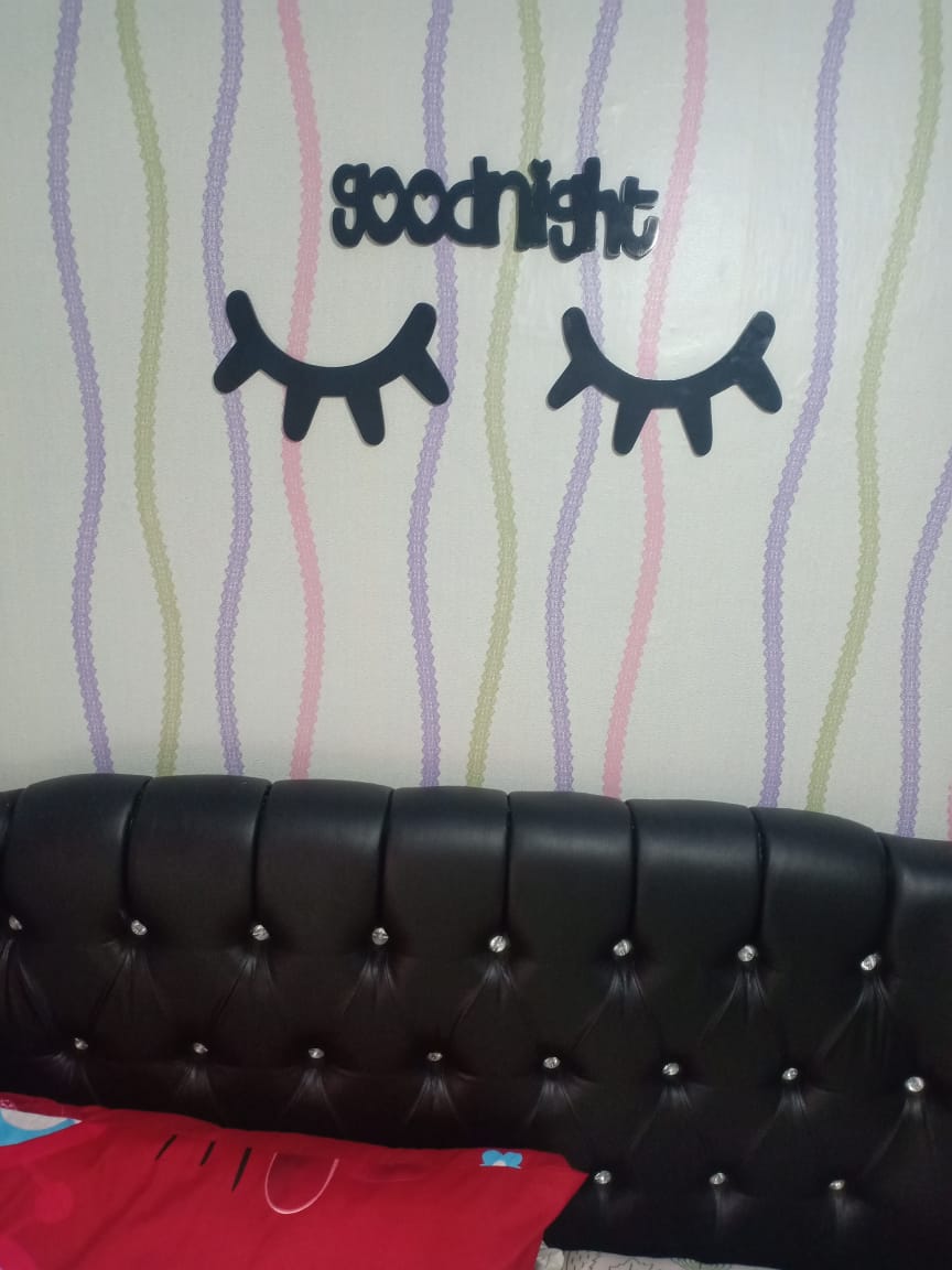 Isi Paket : Hiasan dinding “goodnight” & double tape foam untuk pemasangan